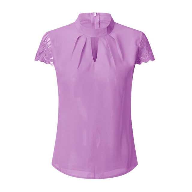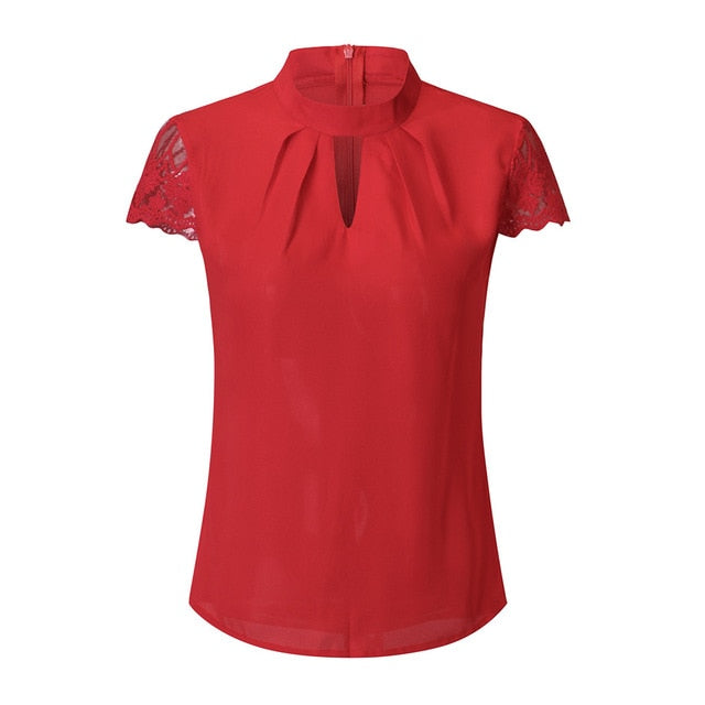 Hollow Chiffon Short Sleeve Splice Lace Tops Blouse