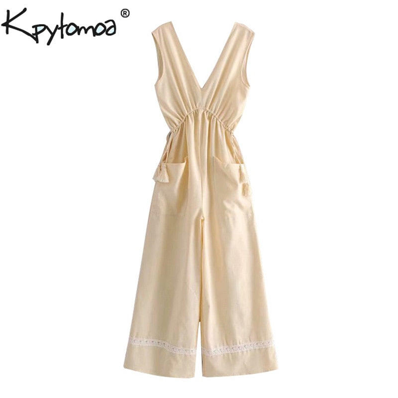 Vintage Sexy Lace Patchwork Pockets Jumpsuits